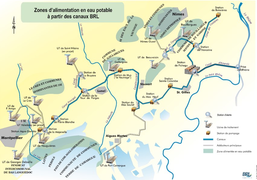 Zones d'alimentation en eau potable à partir des canaux BRL